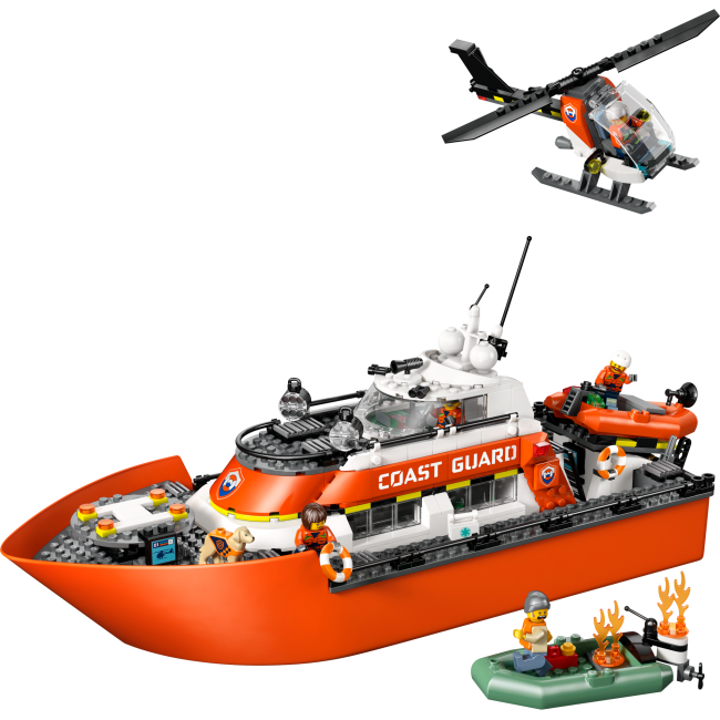 - LEGO® City Coast Guard Rescue Boat & Helicopter pretend-play set for ages 7 plus